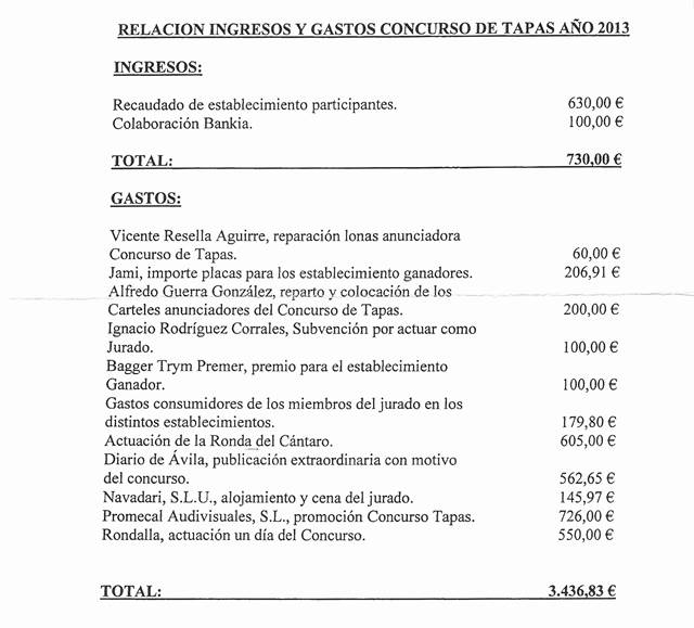 “Resulta intolerable que más de la mitad del presupuesto del XI Concurso de Tapas de Piedralaves - 3.000 euros- se destine a publicidad en lugar de repercutir en los verdaderos protagonistas del evento, los bares y restaurantes participantes, actores indiscutibles de esta fiesta gastronómica que llena las calles del pueblo durante todo un fin de semana”.