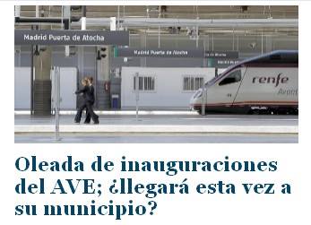 Se acercan las generales. Y el Partido Popular se encuentra en plena vorágine de inauguraciones. León, Zamora, Palencia, Burgos, Castellón o Granada son algunas de las localidades que a partir de ahora se beneficiarán de la alta velocidad.