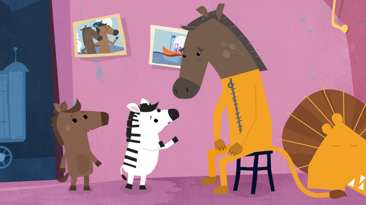 Sinopsis: Zibila es una cebra adoptada por una familia de caballos. En su primer día de escuela, sus compañeros la tratan diferente y se ríen de ella por tener rayas, pero gracias a una gran aventura con su amigo Carino recuperará su confianza.
