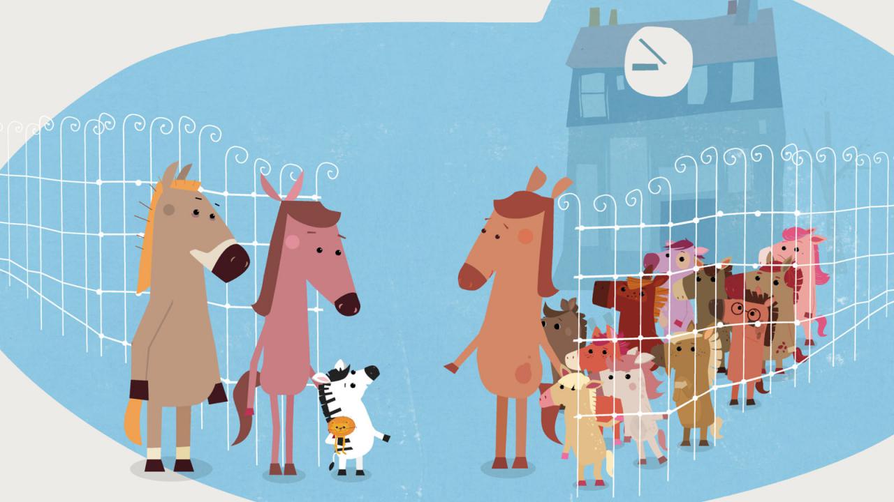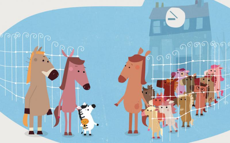 Zibila es una cebra adoptada por una familia de caballos. En su primer día de escuela, sus compañeros la tratan diferente y se ríen de ella por tener rayas, pero gracias a una gran aventura con su amigo Carino recuperará su confianza.