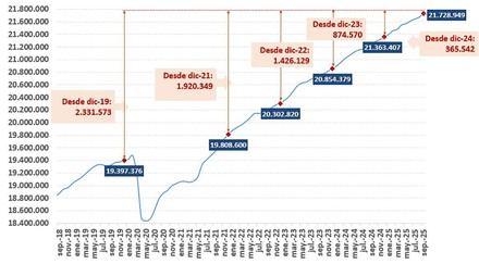 La afiliación a la Seguridad Social en España ha superado los 21,7 millones de afiliados en septiembre, marcando uno de los mejores resultados históricos para este mes. Se registraron 56.700 nuevos ocupados, lo que representa un crecimiento del 0,3% respecto al mes anterior. Desde diciembre de 2021, se han sumado más de 1,92 millones de afiliados. La mejora se observa especialmente entre jóvenes y mayores de 55 años, con incrementos del 24,3% y 23,3%, respectivamente. Además, el número de mujeres afiliadas alcanza cifras récord, con un aumento del 12,6% desde antes de la reforma laboral. Los sectores más dinámicos incluyen Transporte y Almacenamiento, Agricultura y Educación. El empleo en España crece a un ritmo superior al de otros países europeos y la calidad del empleo también ha mejorado significativamente desde la implementación de reformas laborales.